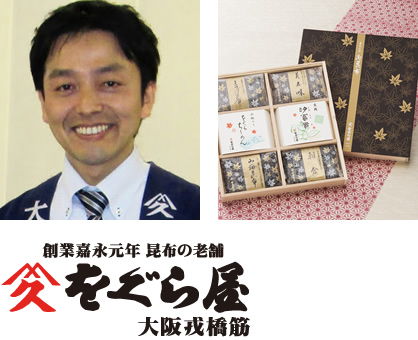 難波に本店、うめだ店、なんばウォーク店の直営店舗と、量販店各店に贈答用商品を卸売。堺工場では現代の名工、黄綬褒章を受章した昆布職人を有する等メディアからも注目され、特徴ある商品づくりを得意としています。各社、贈答需要のオリジナルPB製品の開発もサポート。
