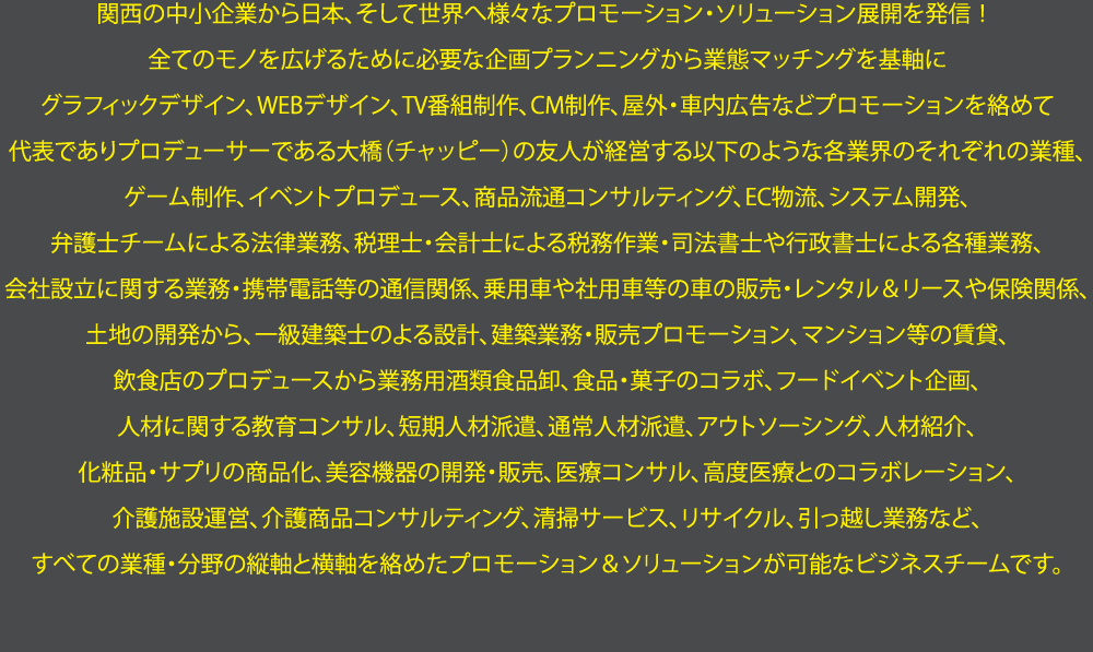 各業界の横のつながり、異業種の縦のつながり チャピプロなら、どんなことでもやり遂げれる